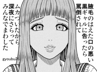 gyoubu26 腋毛のはえた口の悪い黒ギャルに告ったら罵倒されてムカついたから深夜にさらってみんなでまわした【ギャル漫画】d_701586